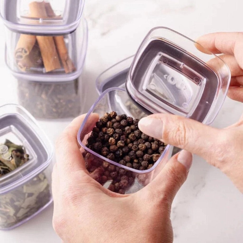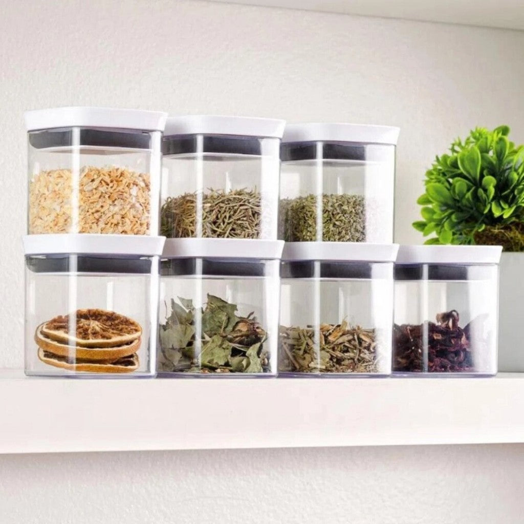 Este prático conjunto de potes herméticos é a solução ideal para quem busca otimizar espaço e manter a qualidade dos alimentos por mais tempo.