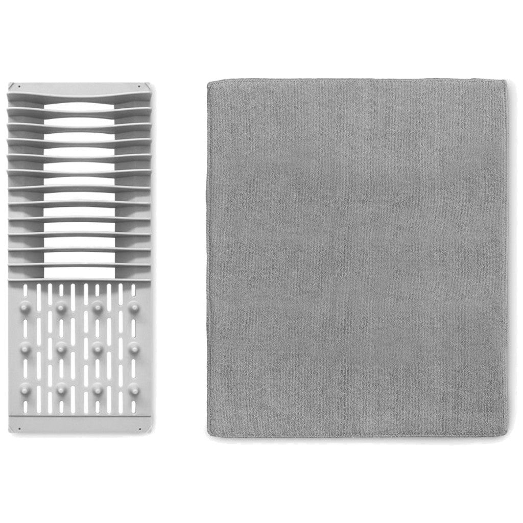 Projetado para otimizar o espaço da sua bancada, o Escorredor de Louças Powermaid combina um escorredor robusto de Poliuretano com um tapete super absorvente de Microfibra, ambos na elegante cor cinza.