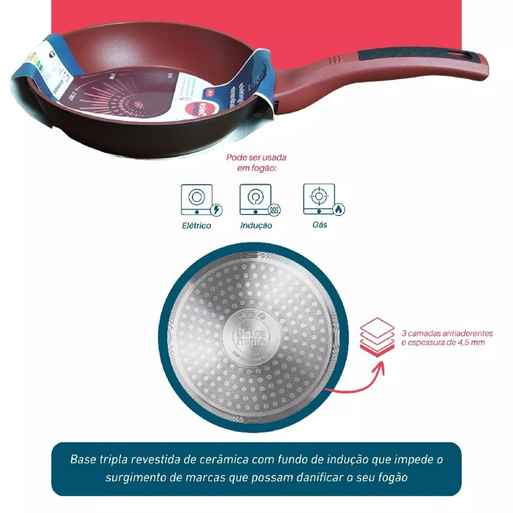 Transforme sua cozinha com a Frigideira Vermelha Antiaderente Dolce Home, a combinação perfeita de estilo, durabilidade e eficiência para suas receitas diárias.