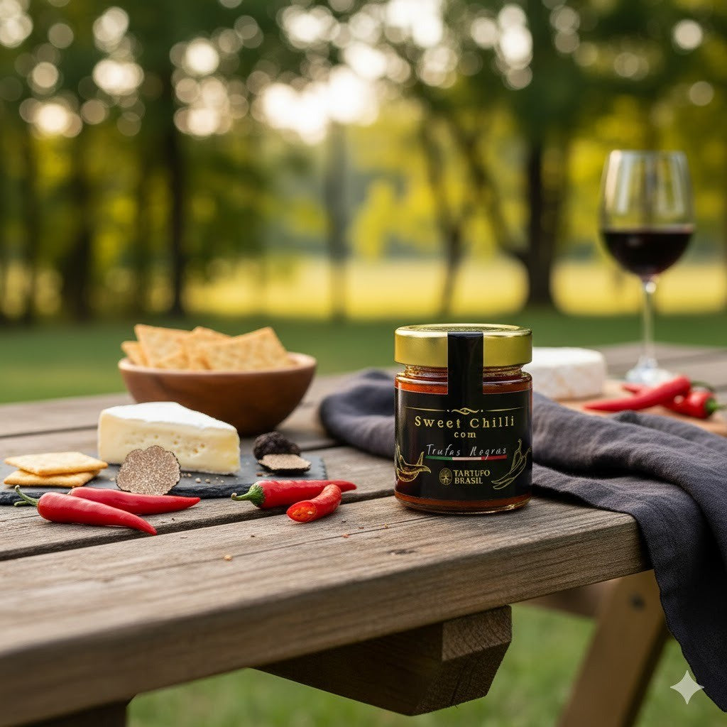 Descubra o sabor exótico e sofisticado do Molho Sweet Chilli com Trufas Negras Tartufo, um toque agridoce e picante para suas criações culinárias.
