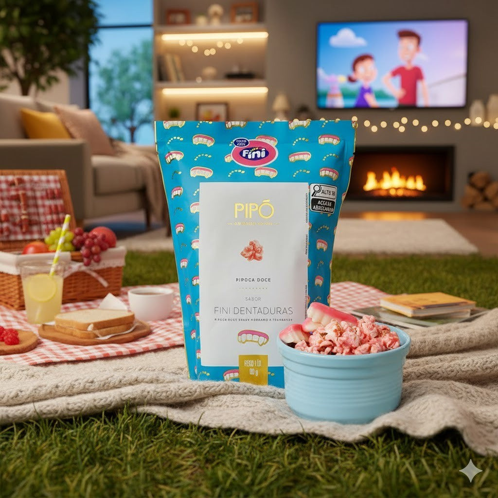 A Pipoca Doce Pipó sabor Fini Dentaduras de 80g oferece uma explosão de sabor e diversão, ideal para um momento de puro prazer e nostalgia.