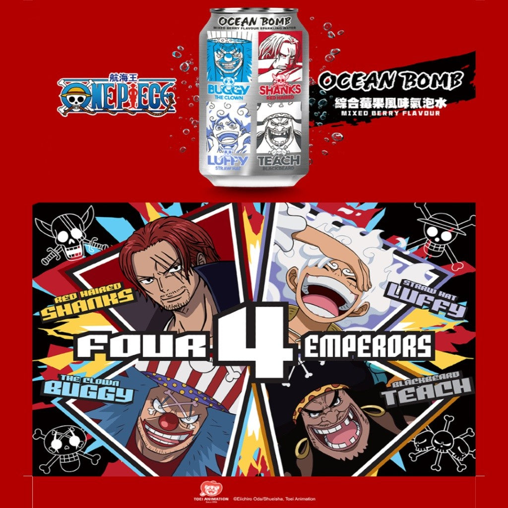 Descubra o universo de One Piece com o Refrigerante Sabor Frutas Vermelhas Soda 330ml Ocean Bomb.
