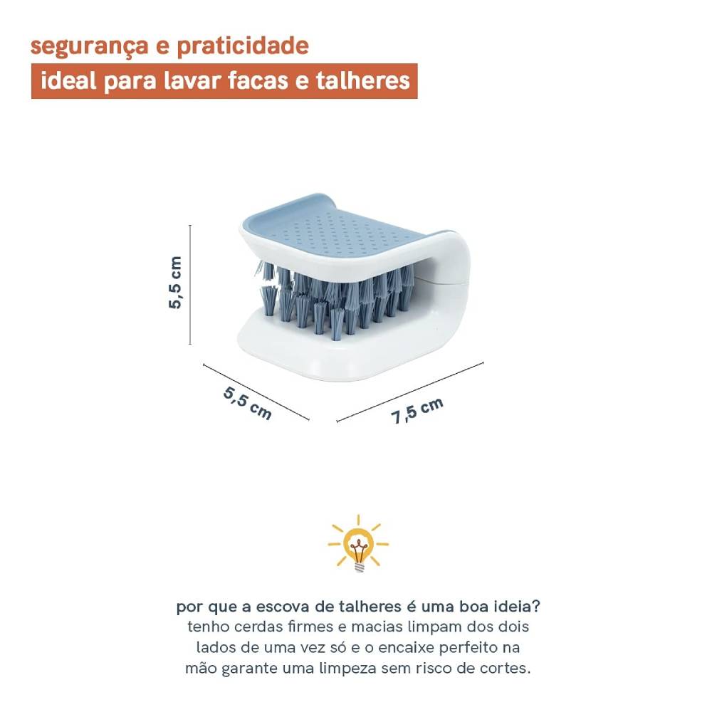 Limpeza eficaz e praticidade na lavagem de talheres A Escova para Lavar Talheres Azul da marca Oikos é a solução ideal para manter seus talheres limpos de forma segura e eficaz. Feita com materiais de alta qualidade, como ABS e PP, essa escova proporciona uma limpeza mais completa e higiênica do que uma esponja comum. Além disso, seu design inovador permite lavar os dois lados do talher simultaneamente, otimizando o tempo na cozinha. Segurança: Protege suas mãos contra cortes durante a lavagem Praticidade: Lava os dois lados do talher ao mesmo tempo Durabilidade: Feita com materiais resistentes e de qualidade Design Funcional: Facilita a limpeza de utensílios de cozinha de forma eficiente Essa escova é ideal para uso doméstico, em cozinhas residenciais, restaurantes, confeitarias e outros estabelecimentos comerciais. Seu formato ergonômico e leve proporciona conforto durante o uso, tornando a tarefa de lavar talheres mais simples e rápida. Utilize a Escova para Lavar Talheres Azul Oikos com água e detergente neutro para uma limpeza mais eficaz. Após o uso, enxágue bem a escova e deixe-a secar ao ar livre para evitar a proliferação de bactérias. Evite utilizar produtos abrasivos que possam danificar o material da escova. Marca: Oikos Material: ABS e PP Medidas: 7,5cm x 7,5cm x 5,5cm Cor: Azul Origem: China Categoria: CozinhaEscova para Lavar Talheres Azul - Oikos