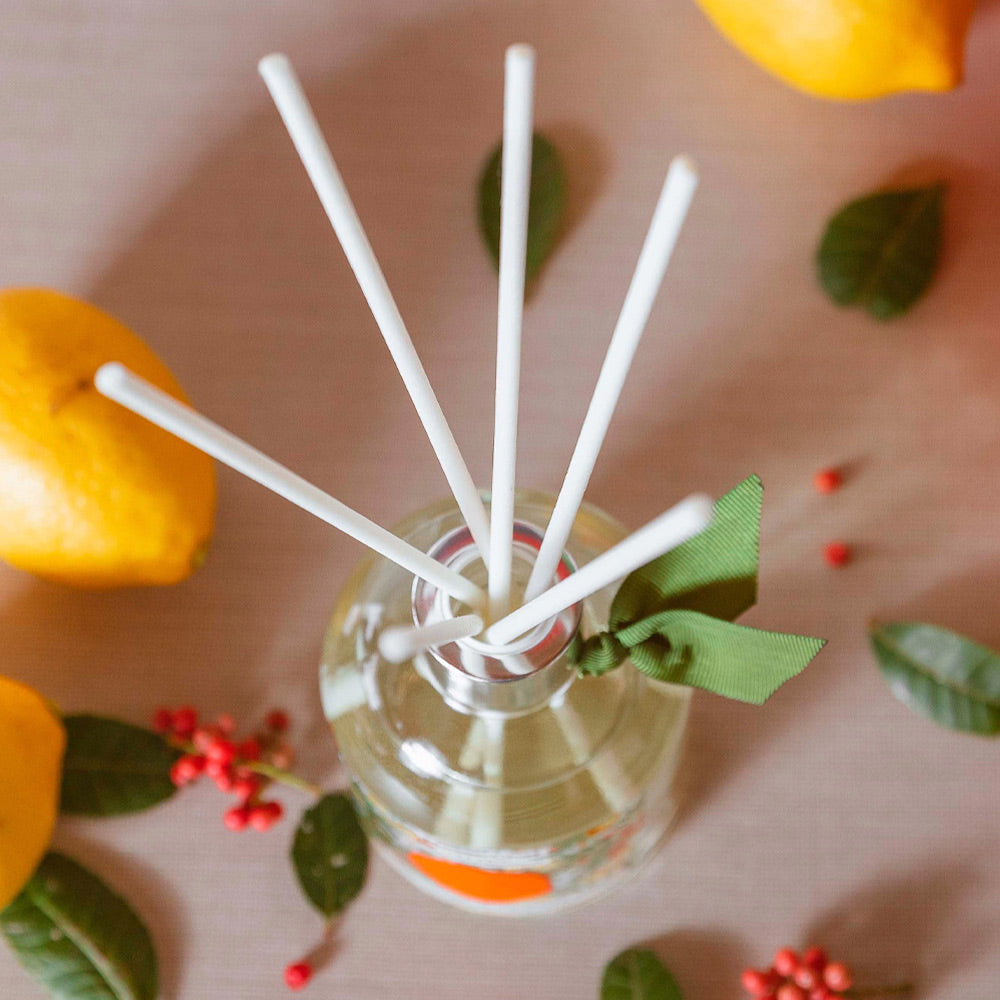 Para ativar o aroma, mergulhe as varetas de madeira dentro do frasco. A madeira absorverá o óleo e exalará a fragrância pelo ambiente de forma gradual.