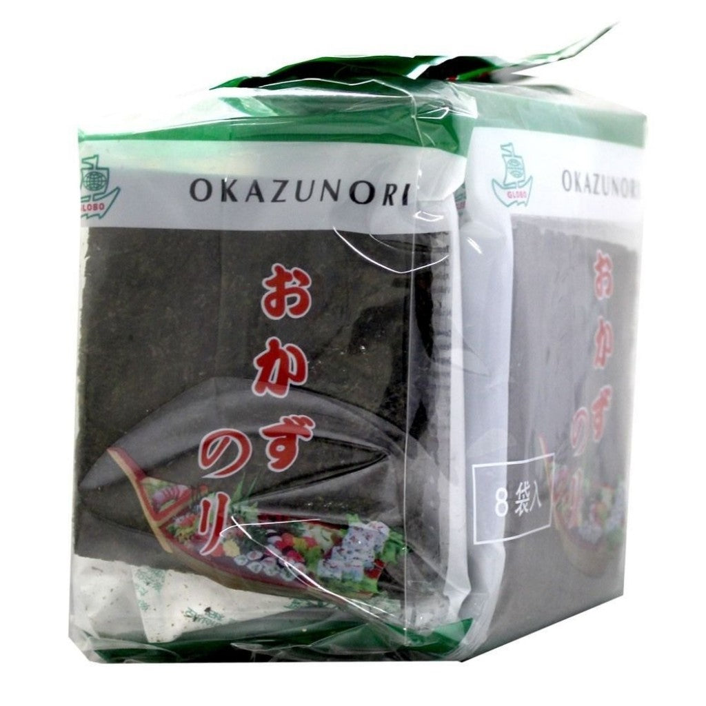 A Alga Marinha Okazunori Temperada 32un - Globo pode ser consumida diretamente como aperitivo, acompanhando o tradicional Onigiri ou cortada e adicionada sobre pratos como Lámen, macarrão Sobá e Somen gelado. Experimente também combiná-la com outros ingredientes para criar diversas combinações de sabores.