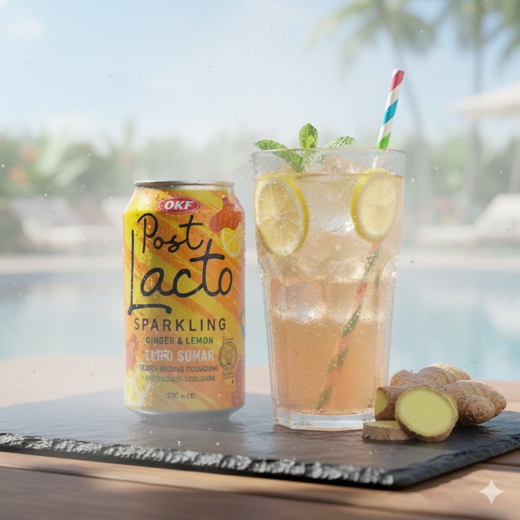 Desfrute da refrescância e do sabor exótico da Bebida Postlacto Gengibre e Limão OKF 350ml, ideal para o seu bem-estar.