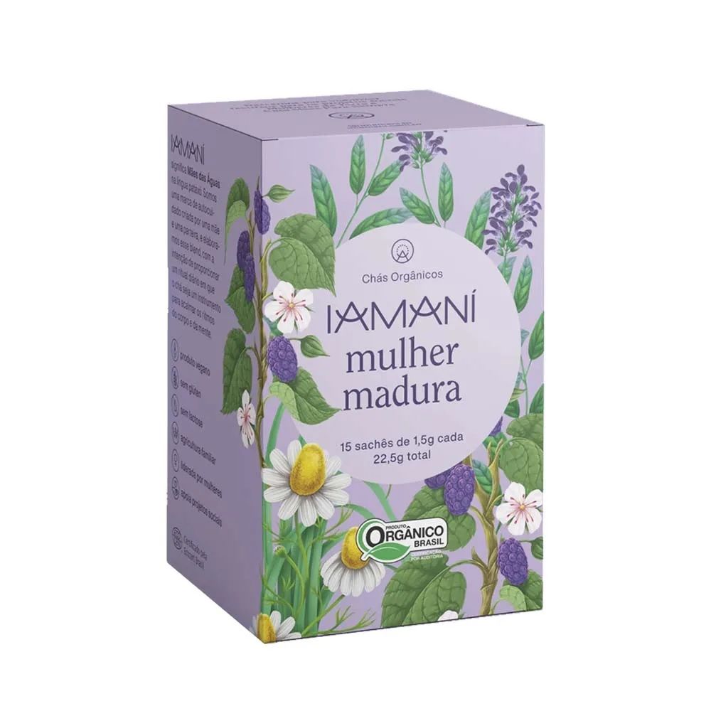 Desfrute de bem-estar e equilíbrio hormonal com o Chá Orgânico Mulher Madura IAMANI, um aliado natural para a sua saúde.