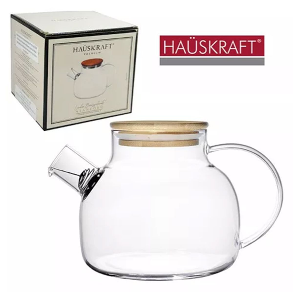 Chaleira Stanford com Bico Coador em Vidro e Tampa Bambu 1L