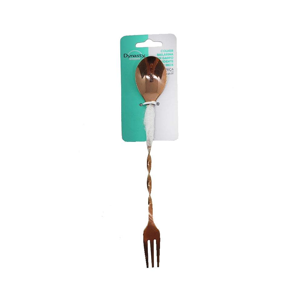 COLHER BAILARINA C/ GARFO TRIDENTE INOX COBRE 23CM DYNASTY