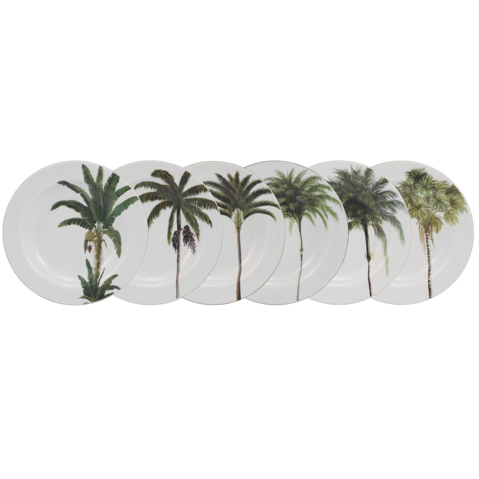 Conjunto de 6 Pratos Fundos de Porcelana Palmeira 22cm Schmidt