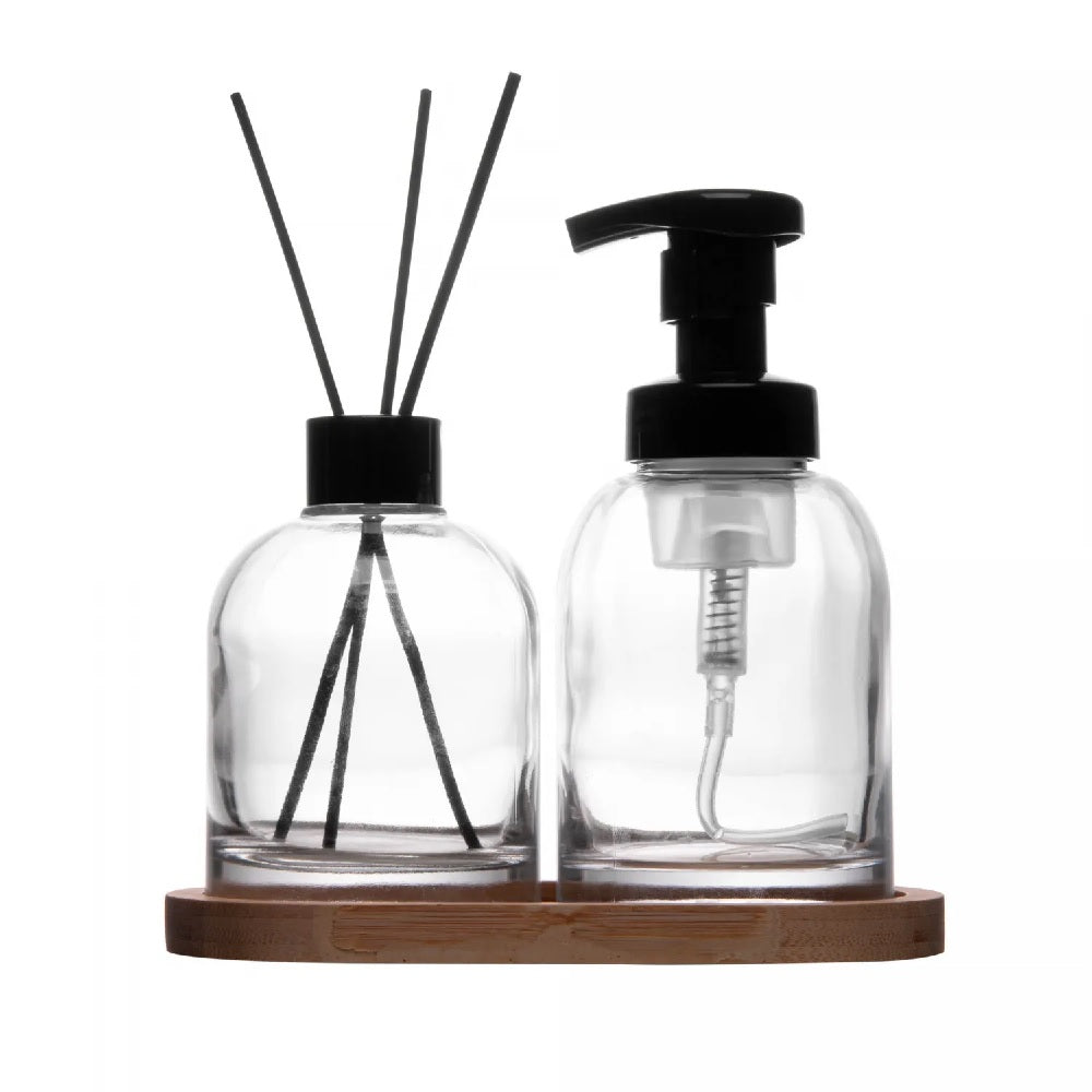 Composição completa com porta sabonete líquido, difusor e bandeja, essenciais para a organização diária.