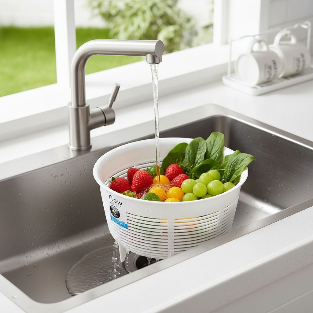 Posicione o escorredor diretamente dentro da pia da cozinha para o uso mais eficiente.
