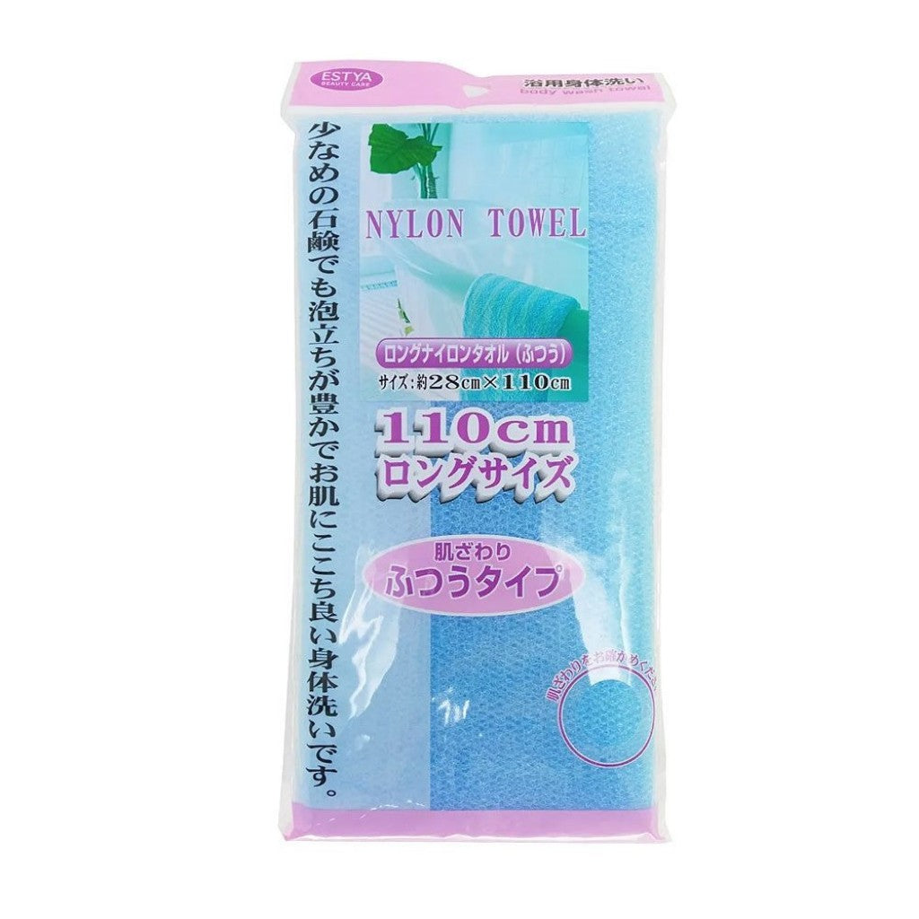 A Esponja Toalha de Nylon Meio Grossa Estya Beauty Care proporciona uma limpeza profunda e massagem corporal durante o banho, ideal para a higiene pessoal.