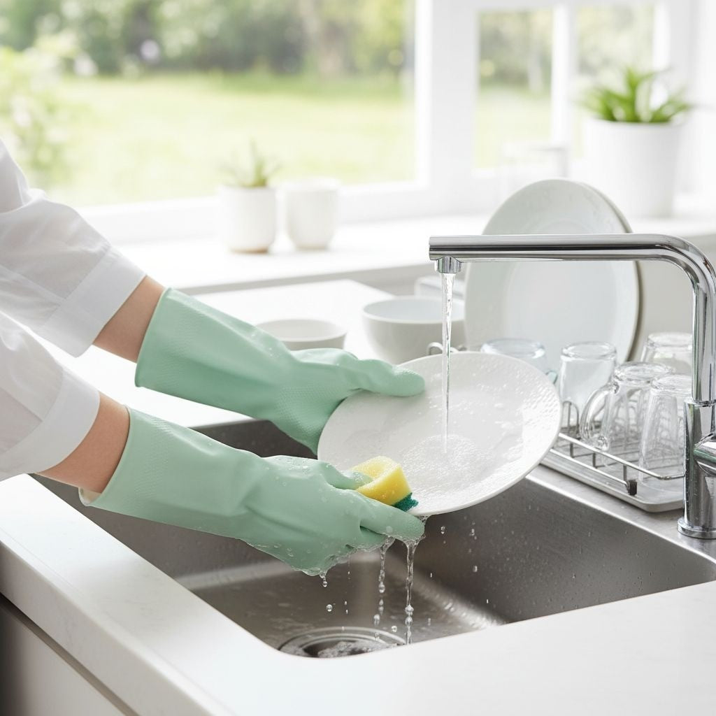 Proporciona proteção e conforto essenciais para suas mãos durante as tarefas de limpeza doméstica, garantindo higiene e durabilidade.