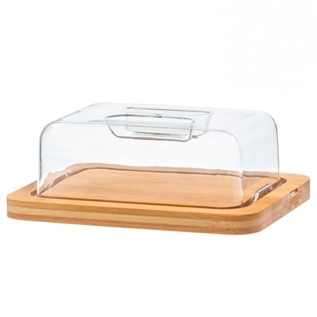 Tampa de acrílico transparente que permite visualizar o conteúdo e mantém a manteiga protegida e fresca.