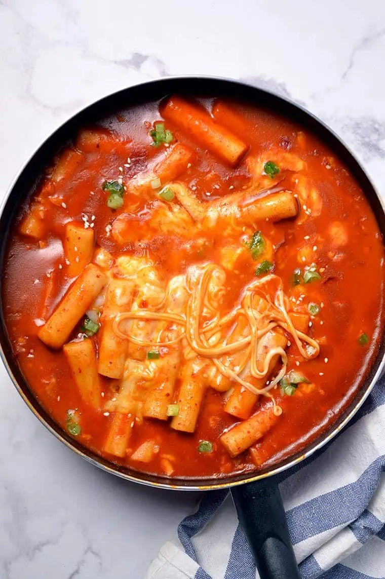 A massa de arroz, conhecida por sua textura macia e leve, atua como o veículo perfeito para absorver e realçar o sabor picante e cremoso do queijo. Cada mordida é uma explosão de sabor e textura.