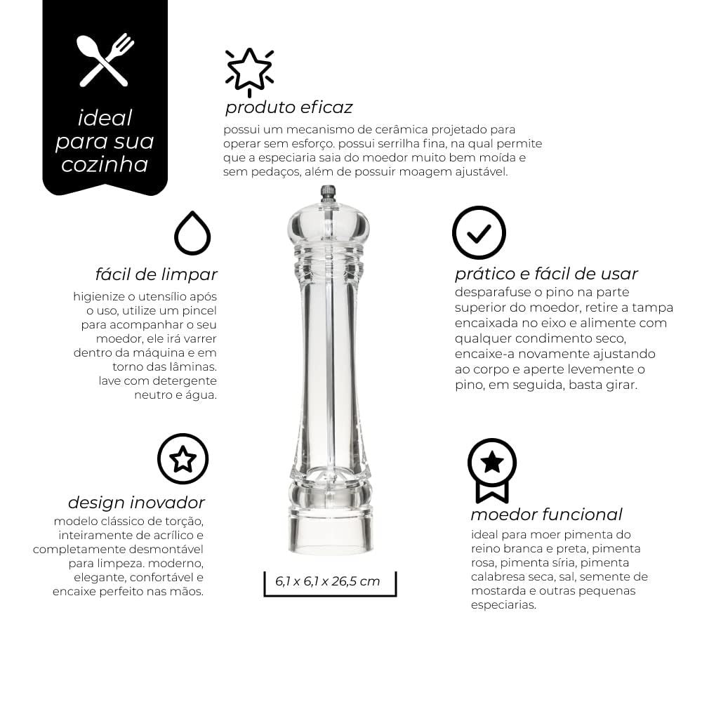 Desfrute de um Moedor Manual de Qualidade O Moedor Acrílico 15cm da Mimo Style é a escolha perfeita para quem busca praticidade e eficiência na hora de moer seus grãos. Com um mecanismo de cerâmica projetado para operar sem esforço, este moedor torna o processo de moagem muito mais simples e rápido. Mecanismo de cerâmica de alta qualidade Serrilha fina para moagem precisa Design elegante e durável Este moedor manual é ideal para moer café, pimenta e outros grãos. Sua serrilha fina permite ajustar o nível de moagem de acordo com suas preferências, garantindo sempre grãos moídos na medida certa para o seu preparo. Para obter os melhores resultados, encha o moedor com os grãos desejados e gire a manivela suavemente. Ajuste a serrilha conforme a grossura desejada e desfrute de grãos moídos na hora para um sabor e aroma intensos. Marca: Mimo Style Material: Acrílico Tamanho: 15cmMoedor Acrílico 15cm - Mimo Style