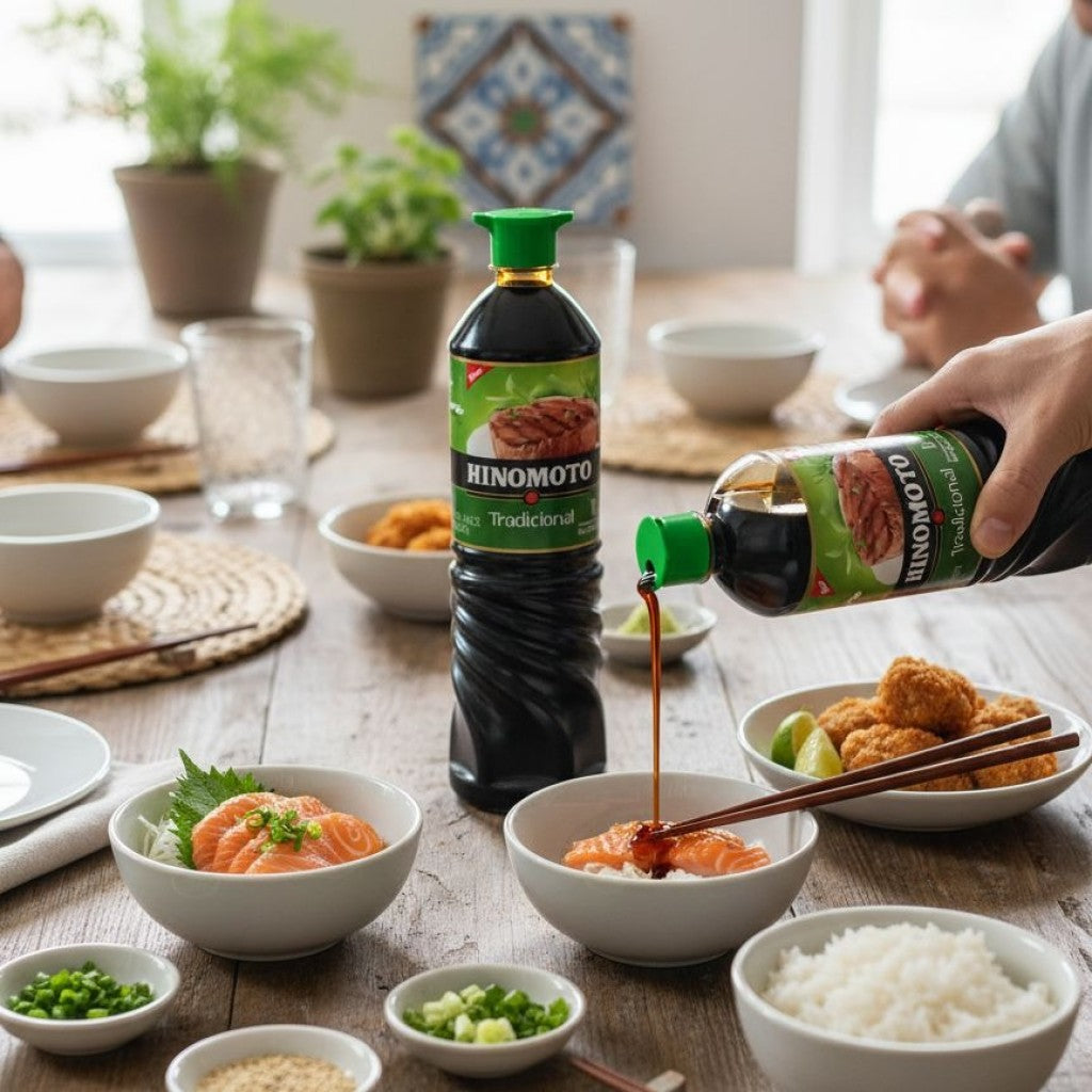 Utilize o Molho de Soja Tradicional Hinomoto para temperar sushis e sashimis, ou como base para molhos agridoces e teriyakis.
