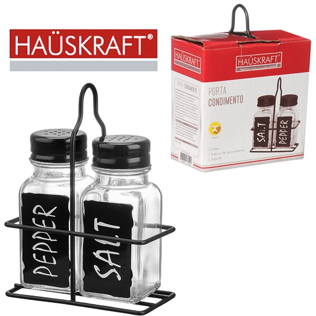 O Porta Condimento de Vidro com Suporte Aramado 2 Peças da marca Hauskraft é a opção ideal para manter seus condimentos sempre À mão na cozinha.