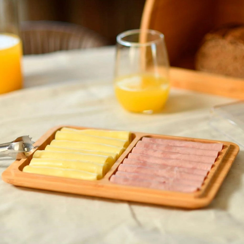 Leve organização e elegância para sua mesa com este versátil Porta Frios Duplo de Bambu.