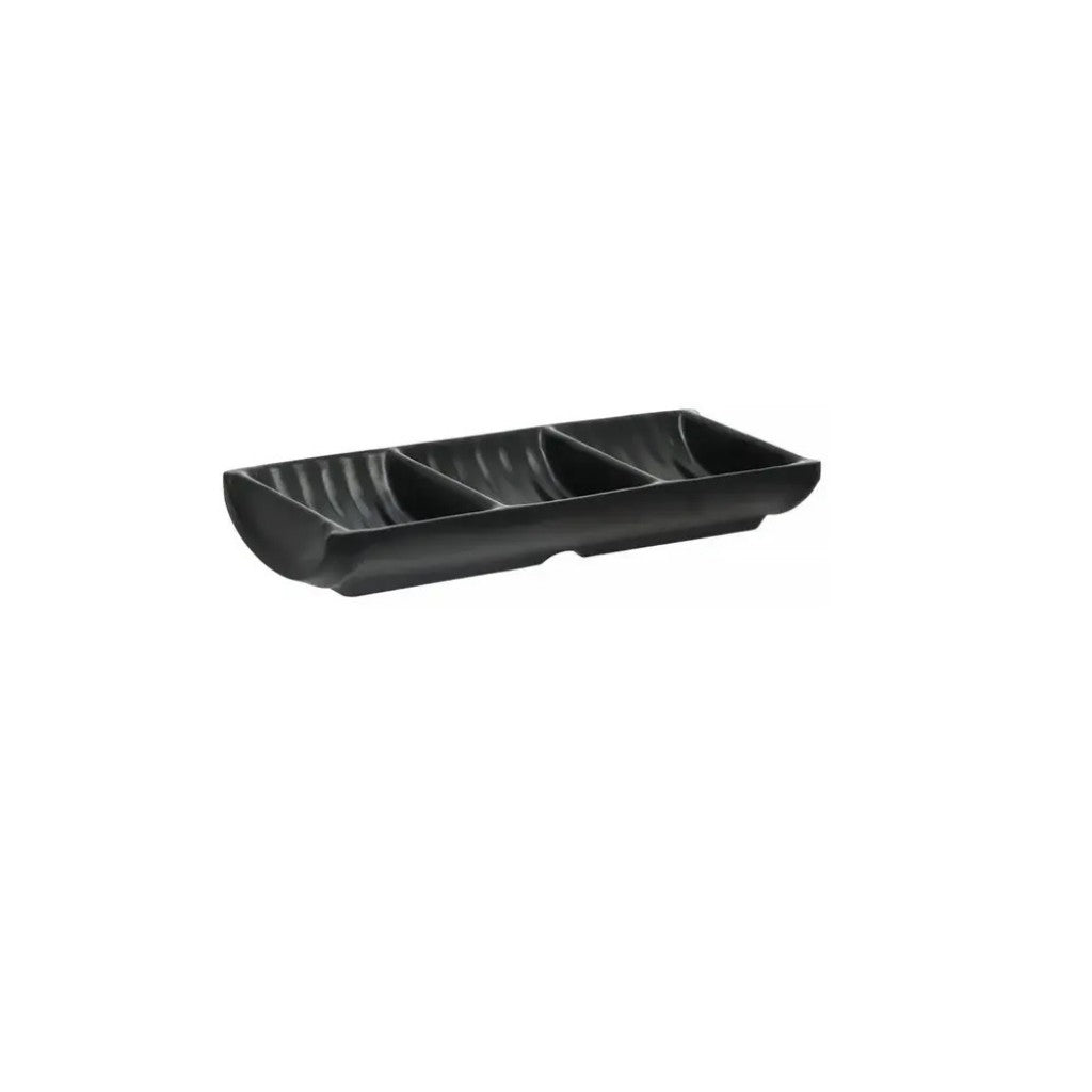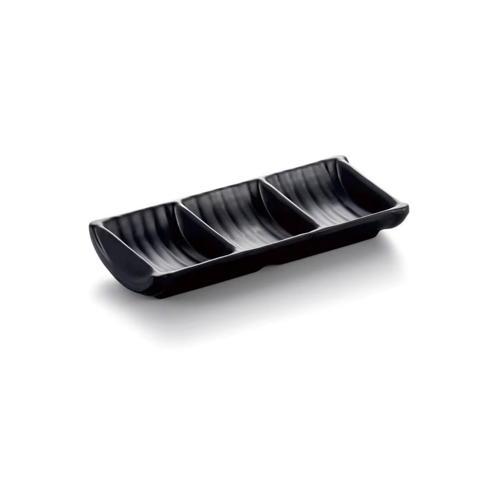 Sirva seus pratos orientais com elegância e praticidade utilizando o Prato para Sushi Hauskfraft, feito em melamina preta e com 3 divisórias para uma apresentação impecável.