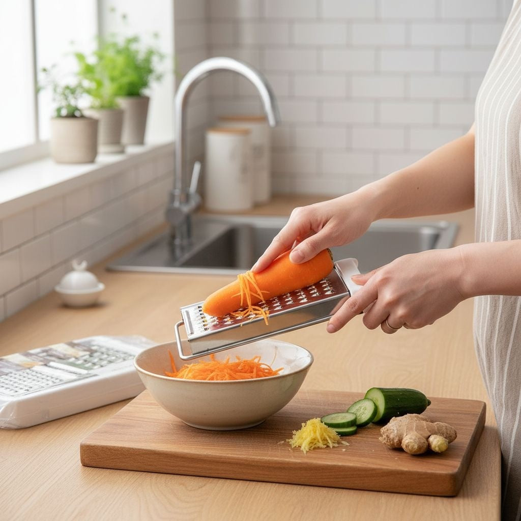 3 funções em 1: Rala e fatia com precisão, ideal para diversas receitas e tipos de alimentos.