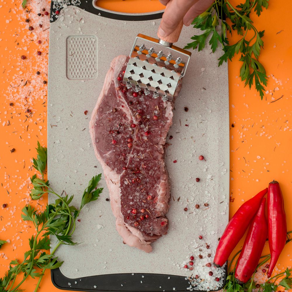 Transforme sua experiência culinária com facilidade e eficiência O Rolo Amaciador de Carne de Metal e Madeira da Oikos vai revolucionar a forma como você prepara suas refeições. Com ele, o processo de amaciar a carne se torna simples e prazeroso, sem a necessidade de aplicar força excessiva. Sua estrutura combinada de metal e madeira permite um manuseio confortável durante o uso. Design inovador que proporciona resultados uniformes Material de alta qualidade que garante durabilidade e resistência Facilidade de limpeza e armazenamento Basta rolar o amaciador pela superfície da carne para obter uma textura macia e suculenta Ideal para preparar bifes, filés e todo tipo de carne de maneira rápida e eficaz Perfeito para chefs profissionais e entusiastas da culinária que buscam praticidade na cozinha Antes de utilizar, certifique-se de que a carne esteja cortada em pedaços adequados para o processo de amaciamento. Com movimentos firmes e constantes, deslize o rolo sobre a carne, garantindo uma aplicação uniforme da pressão. Limpe o amaciador com água e sabão após o uso para mantê-lo em perfeito estado. Marca: Oikos Material: Metal e madeira Peso: 345g Categoria: UtensíliosRolo Amaciador de Carne de Metal e Madeira - Oikos