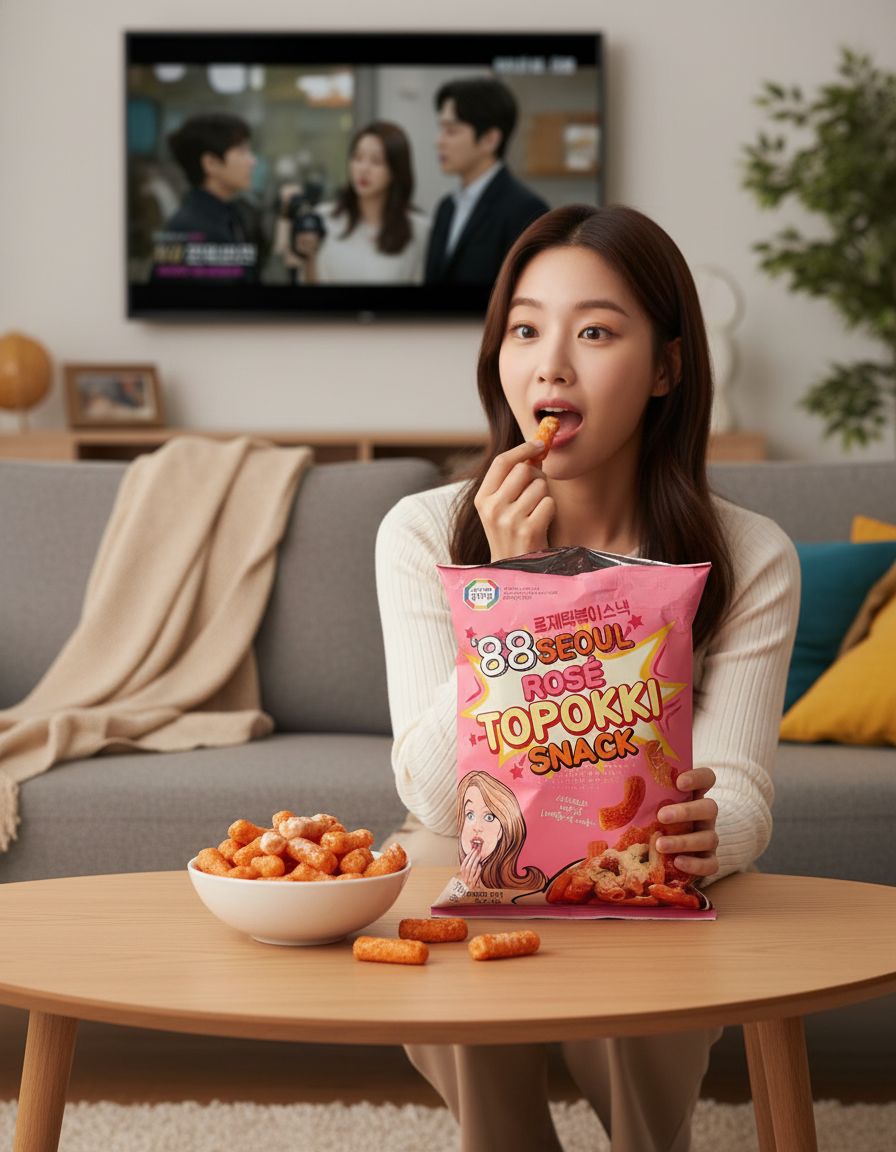 Sabor Autêntico Coreano: Uma réplica deliciosa do famoso Topokki Rose em formato de snack, proporcionando uma experiência gastronômica única e exótica.