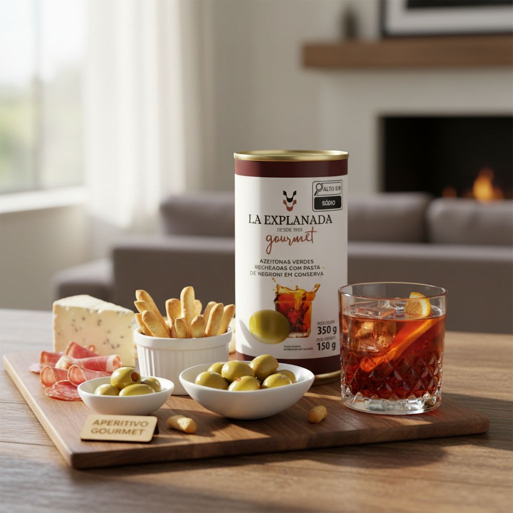 Combinação Exclusiva: A fusão da azeitona verde com a pasta de Negroni oferece um perfil de sabor original e gourmet.