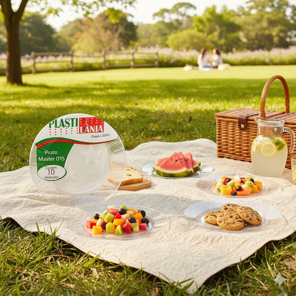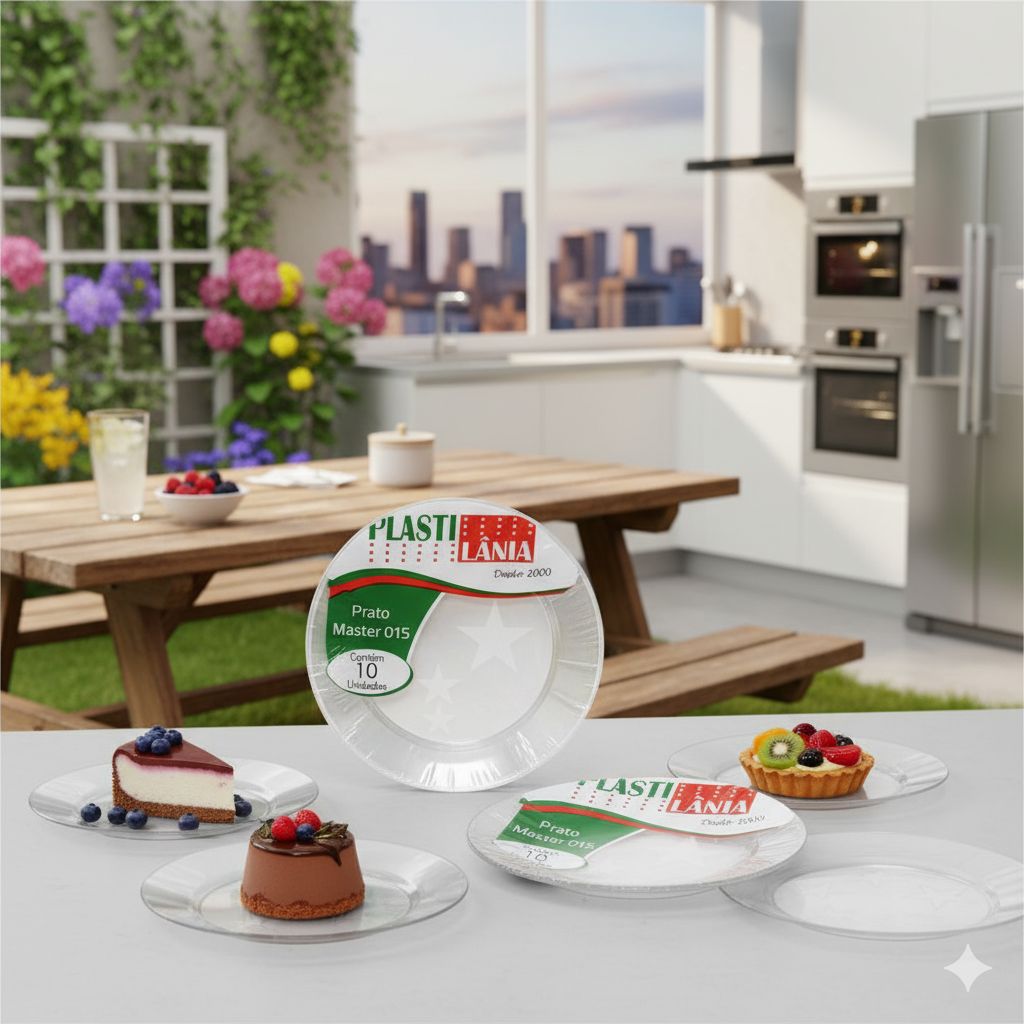Adicione praticidade e elegância às suas celebrações com o Prato Redondo em Acrílico Plastilânia, ideal para servir com estilo em qualquer evento.